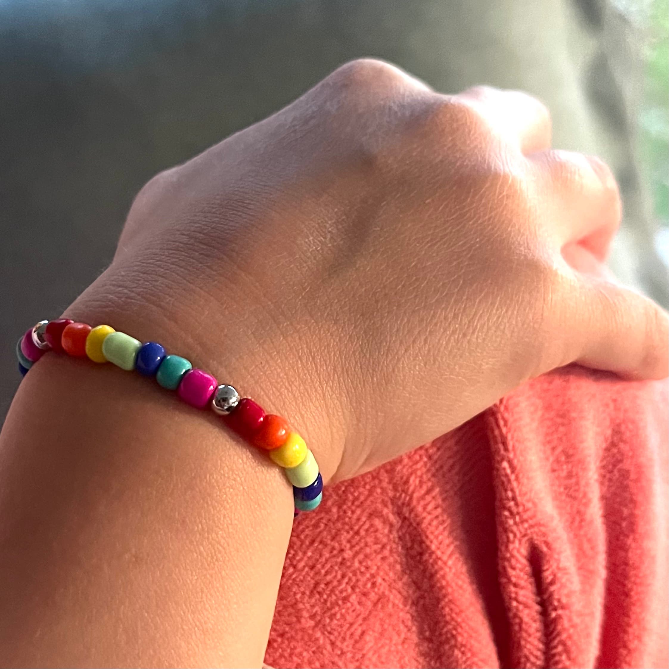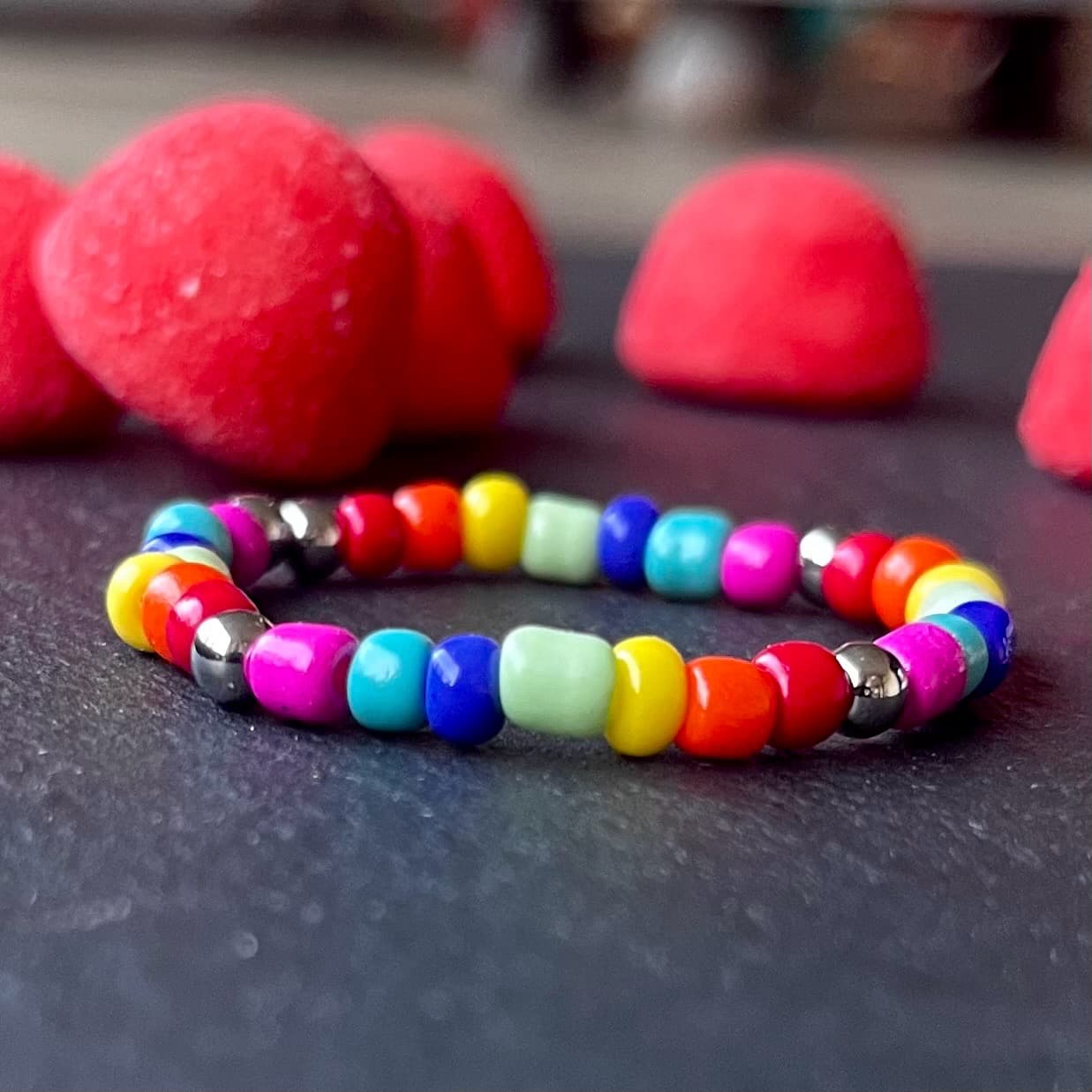 L’univers enchanté de la collection Rainbow, découvrez le bracelet pour fille Céleste, où les perles tchèques aux couleurs de l’arc-en-ciel captivent l’imagination. Chaque perle est soigneusement sélectionnée pour sa brillance et sa couleur éclatante, créant ainsi une palette de teintes joyeuses qui illuminent votre poignet.