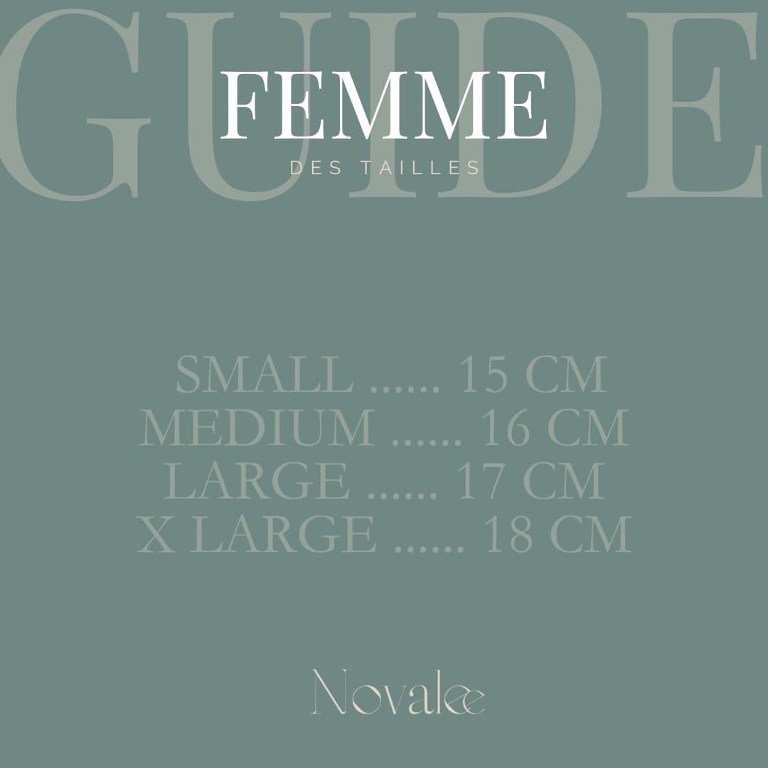 Chaque création est conçue sur mesure, optez pour la taille qui vous convient afin d’obtenir un ajustement parfait à votre poignet.