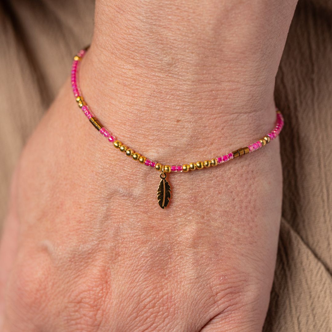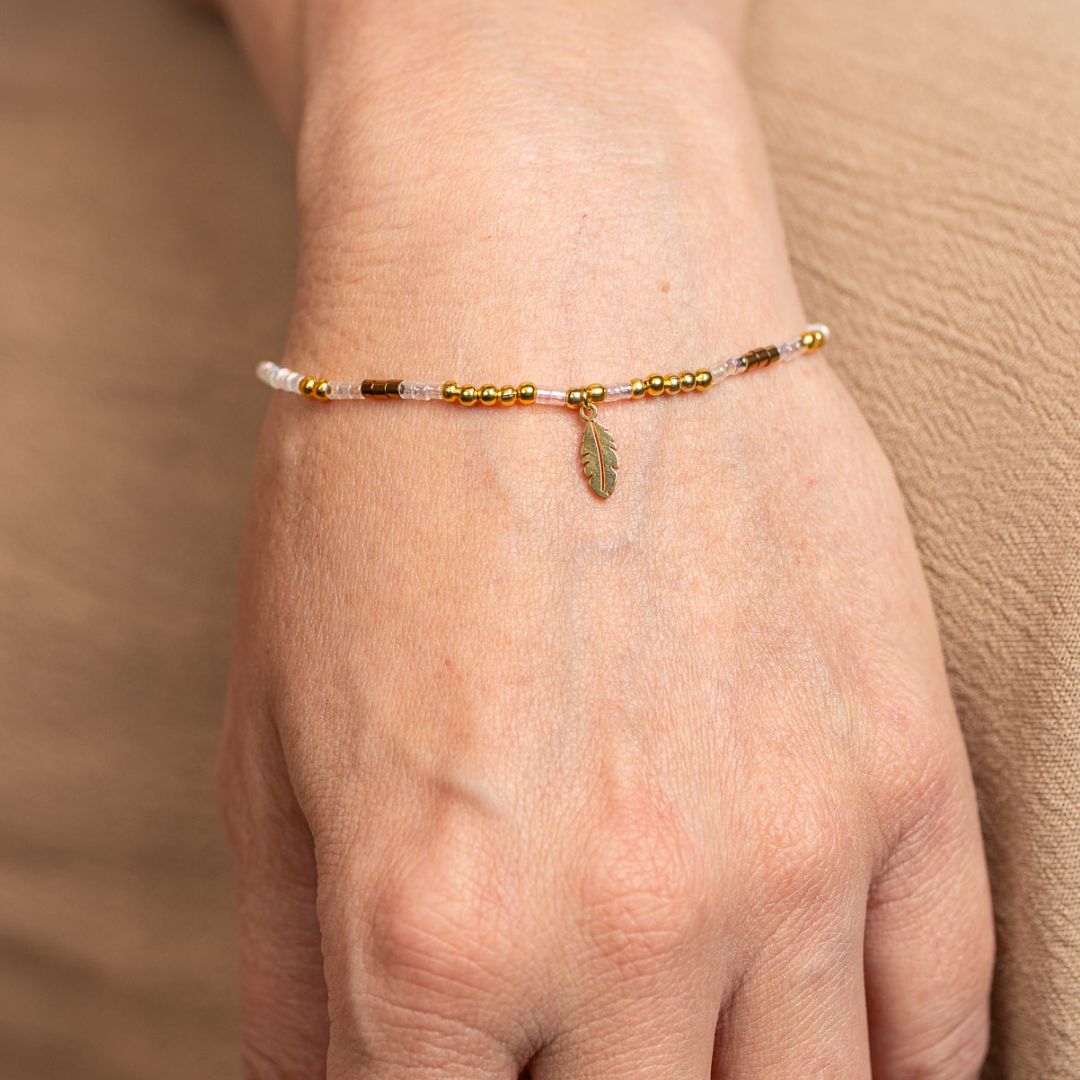 Affirmez votre style avec ce bracelet raffiné composé de perles japonaises aux couleurs fuchsia, champagne, neige ou souris, associées à des perles dorées en acier inoxydable pour une touche élégante et lumineuse. Son pendentif plume en acier inoxydable apporte une note délicate et symbolique, parfait pour sublimer vos tenues au quotidien ou lors d’occasions spéciales.