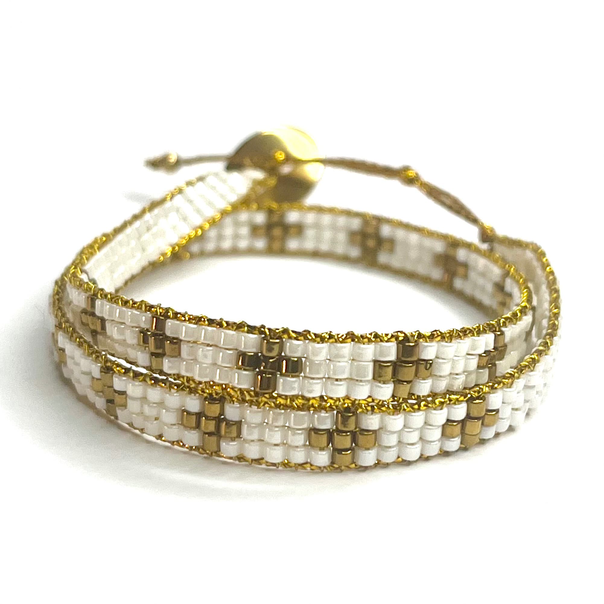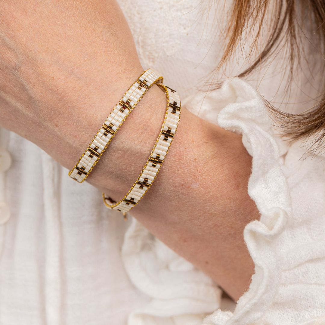 Découvrez notre magnifique bracelet Olympia, un bijou artisanal conçu avec amour et minutie pour ajouter une touche d’élégance à votre style. Notre bracelet est entièrement tressé à la main, et chaque perle de Miyuki est soigneusement sélectionnée pour créer un motif de croix époustouflant. Vous serez séduit(e) par sa beauté et son artisanat exceptionnel.